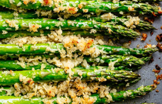 7. 다 구워진 아스파라거스 위에 빵가루를 뿌리고 먹는다.