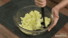 4. 여기에 썰어 놓은 감자를 넣고 모든 슬라이스에 크림이 뭍도록한다.