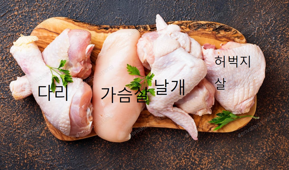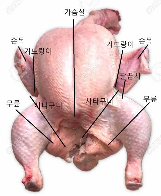 팔꿈치= 보통 치킨 먹을때 "날개"라고 부른게 나온다.